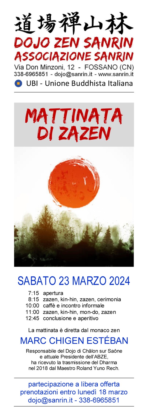 - organizzazione di incontri e conferenze sullo Zen e sul Dharma, o relative ai temi enunciati negli scopi statutari;
